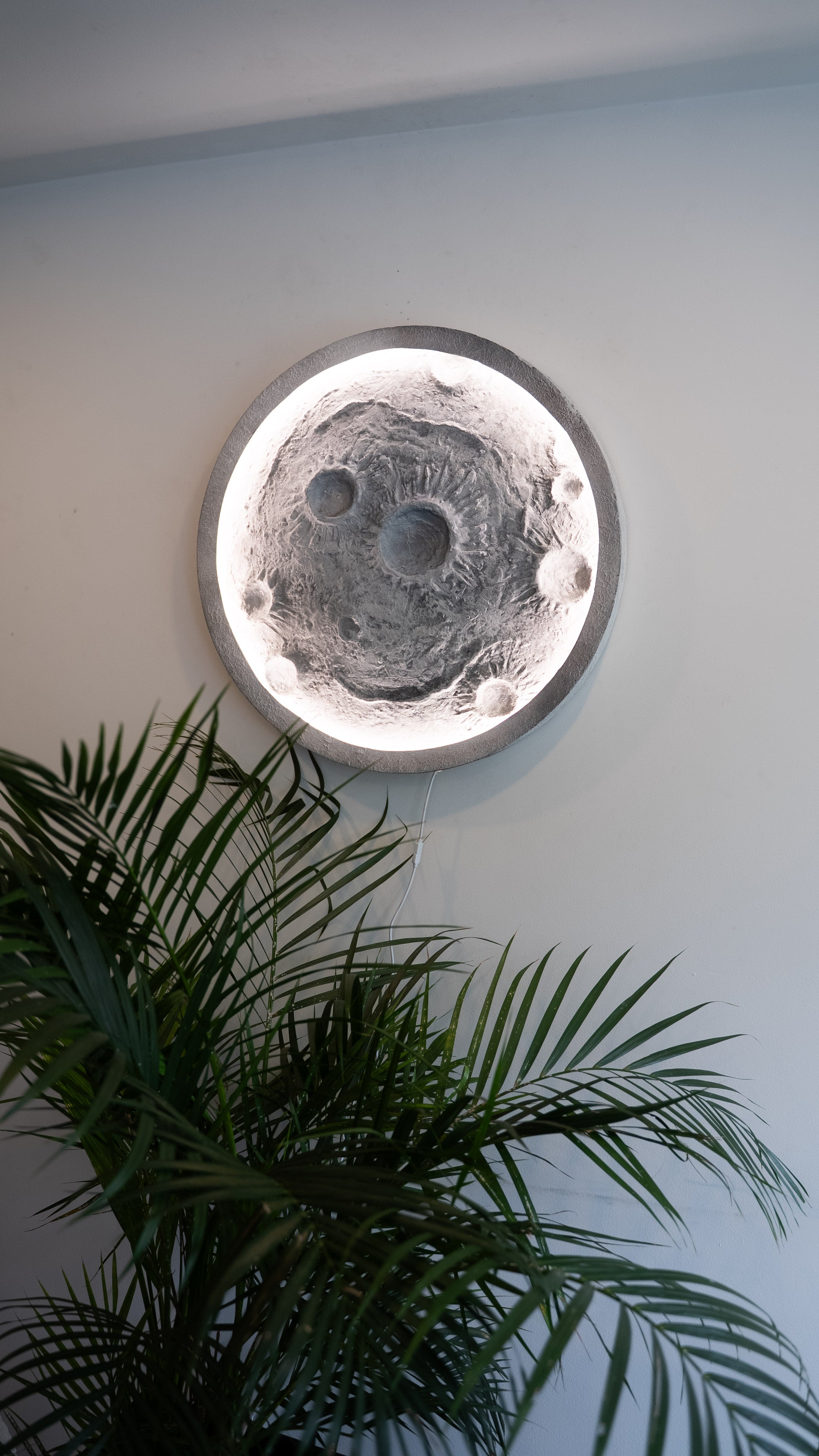 Con 60 cm de presencia lunar, LUNORIA transforma cualquier pared en un portal al cosmos. Su forma minimalista pero poderosa invita a la contemplación, aportando sofisticación, equilibrio y una sensación de calma que reconfigura por completo la energía de un ambiente.